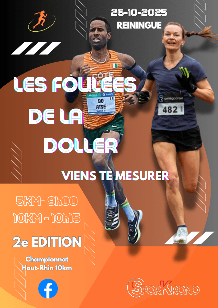 Les Foulées de la Doller se déroulent en Alsace sur la commune de Reiningue dans le département du Haut-Rhin (68), à environ 15 minutes des portes de Mulhouse. Que ce soit pour le plaisir ou pour affoler le chrono, un parcours plat et très roulant vous offrira la possibilité de réaliser de très bonnes performances sur les formats 5km et 10km.
