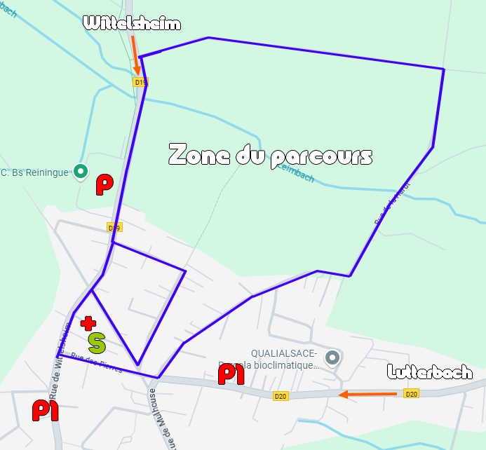 Le stationnement sera formellement interdit dans les rues des Pierres et de Cernay afin de ne pas gêner les coureurs. Des parkings seront accessibles proche du départ mais les places sont limitées (cf. vue ci-dessous), mais il est possible de stationner un peu partout dans le village.